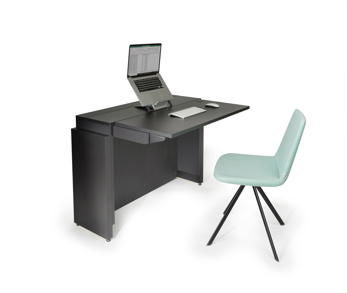 Thuiswerken is inmiddels standaard onderdeel geworden van ons werkende leven. Heeft u niet voldoende ruimte voor een zit/sta werkplek? Met de Hybrid Home biedt Eurodesk een compacte, ruimtebesparende thuiswerkplek die eenvoudig van dressoirkast naar zit/sta werkplek omgezet kan worden. Uitermate geschikt wanneer je een werkplek voor een klein kantoor wil inrichten. De Hybrid Home is beschikbaar in zwart en wit. Als kast is de maat 112×36 cm diep en als bureau 112x 83 cm en elektrisch hoogte verstelbaar van 68-128 cm.