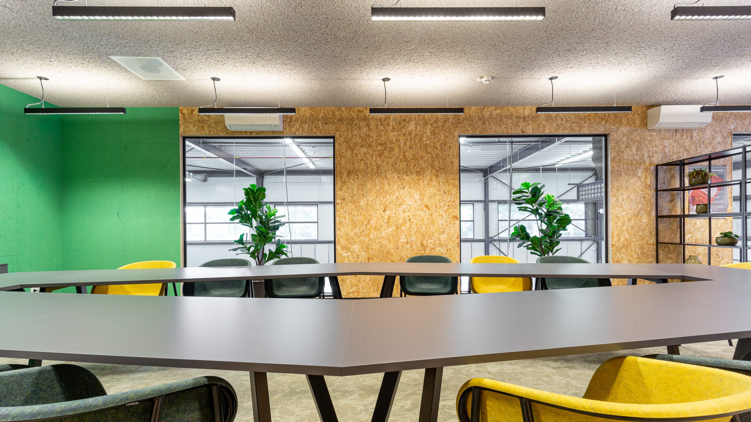 Bij de Amfors Groep werken mensen met een afstand tot de arbeidsmarkt naar het beste van hun vermogen. In samenwerking met de Amfors Groep heeft Eurodesk een ruimte boven de productieruimte mogen inrichten, waar men in combinatie met een bezoek aan deze productieruimte gasten kan ontvangen. De vergaderstoelen zijn gemaakt van gerecycled PET-vilt, dit draagt bij aan de wens van de klant om duurzaamheid als uitgangspunt te nemen. De vergadertafel is aangepast naar de mogelijkheden van de ruimte zodat hier zoveel mogelijk mensen tegelijkertijd aan kunnen zitten.