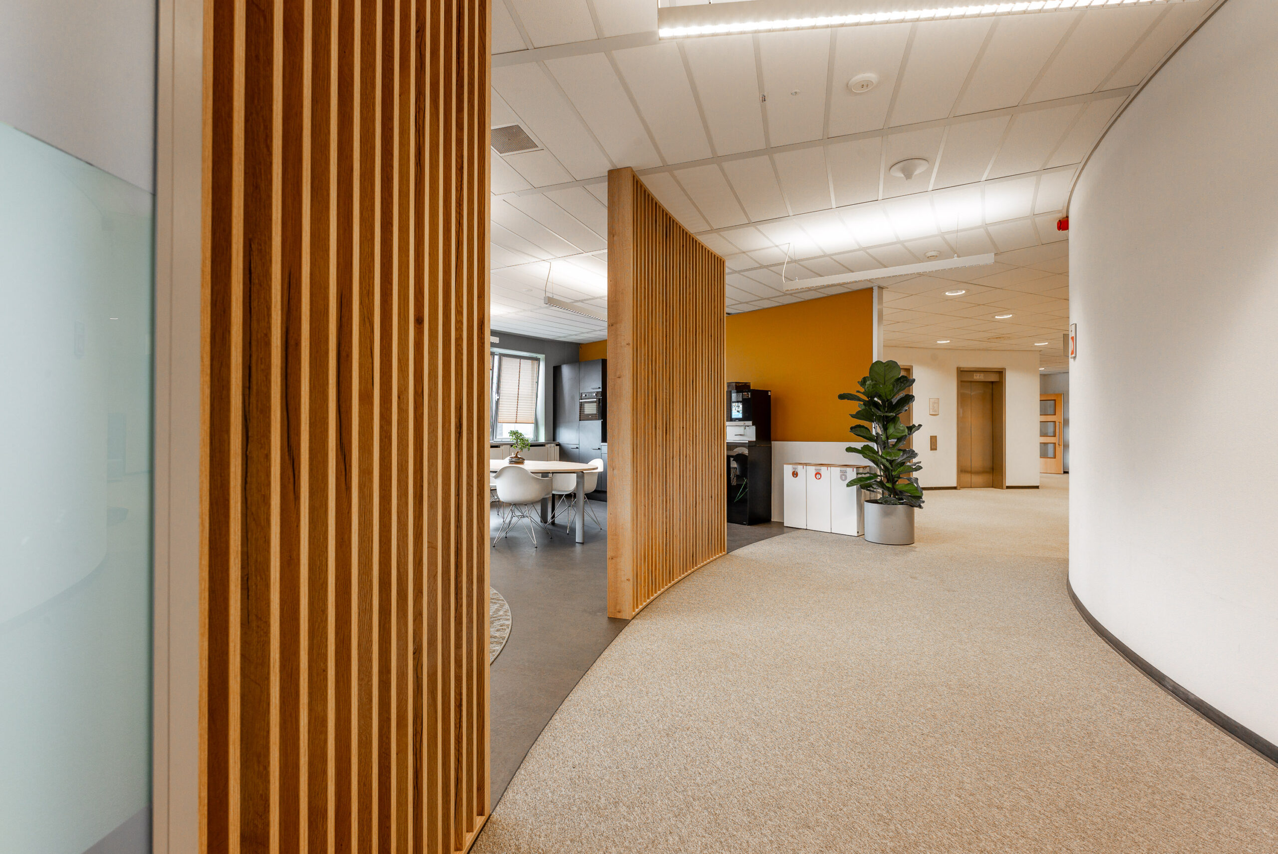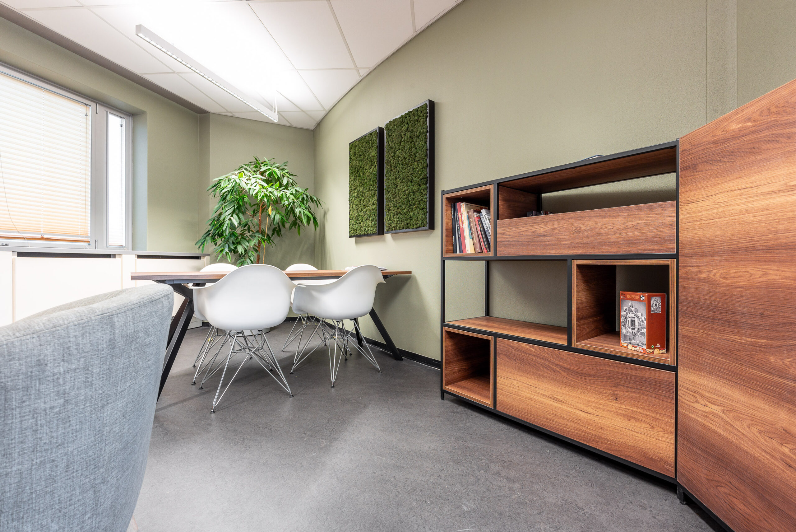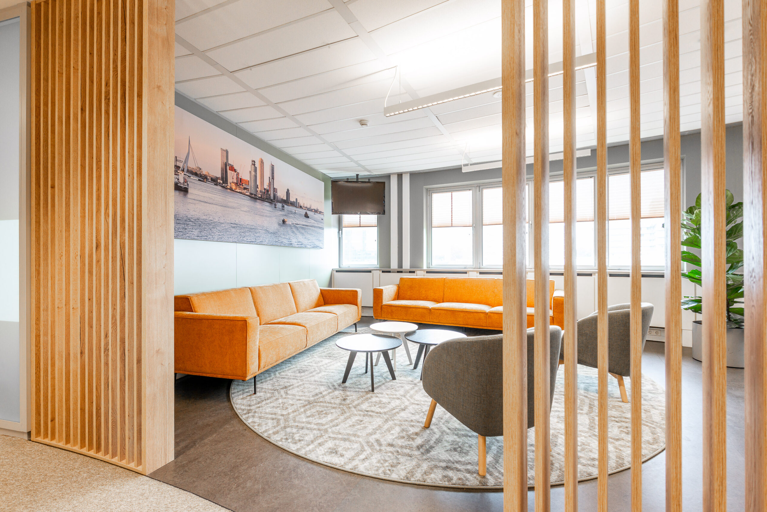 Onlangs heeft het kantoor van FNV in Rotterdam een mooie upgrade gekregen. Bestaand meubilair is intern verhuisd of opnieuw gestoffeerd en op die manier in een vernieuwde omgeving weer voorzien van een 2e leven. Verder zijn er meerdere loungeplekken gecreëerd, verschillende afscheidingen t.o.v. het loopgedeelte voorzien en wandbekleding in verschillende varianten toegebracht zoals bijvoorbeeld prachtige schilderijen van mos.